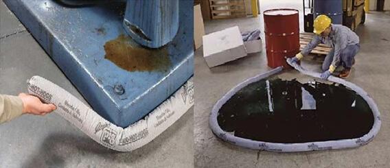 機械溢漏在日常生產(chǎn)中是非常普遍的現(xiàn)場,如機械老化、切削液迸濺等都會使得車間地面存留油污。傳統(tǒng)的處理方式效果并不理想,并且工作量大。而用PIG?吸附產(chǎn)品可吸收并控制過度噴液現(xiàn)象,從而打造一個干凈的工作環(huán)境。